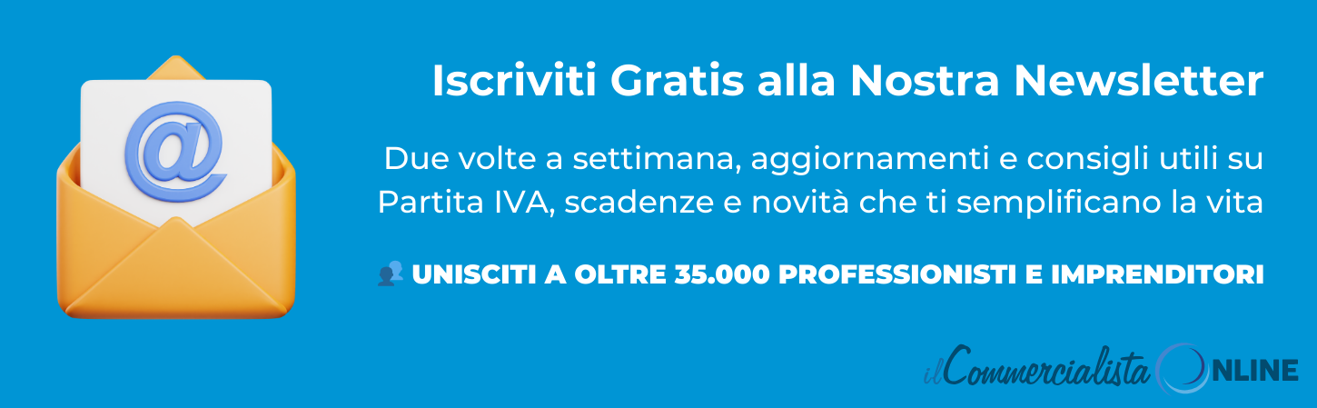 Iscriviti alla nostra newsletter gratuita: ogni settimana (2 volte) riceverai guide pratiche, novità fiscali e consigli utili per gestire al meglio la tua attività.
